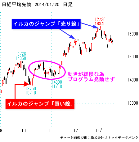 イルカの「売り線」が出ますと、私は自分で先物を売るということを伝え、株式のお客様にはETFの売り、あるいは下がれば上昇するETFの買いをお勧めします。