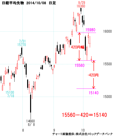 日経平均先物のチャートを掲載しているわけですが、日経平均の動きと同じだと考えて下さい。