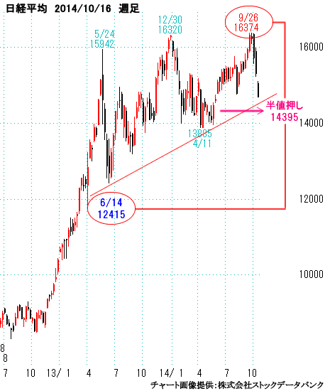 私はそのように想像いたします。結論はどうなのか?と聞かれますと、日経平均先物の値段では間近高値16930、6月の安値14790、半値押しは15860。